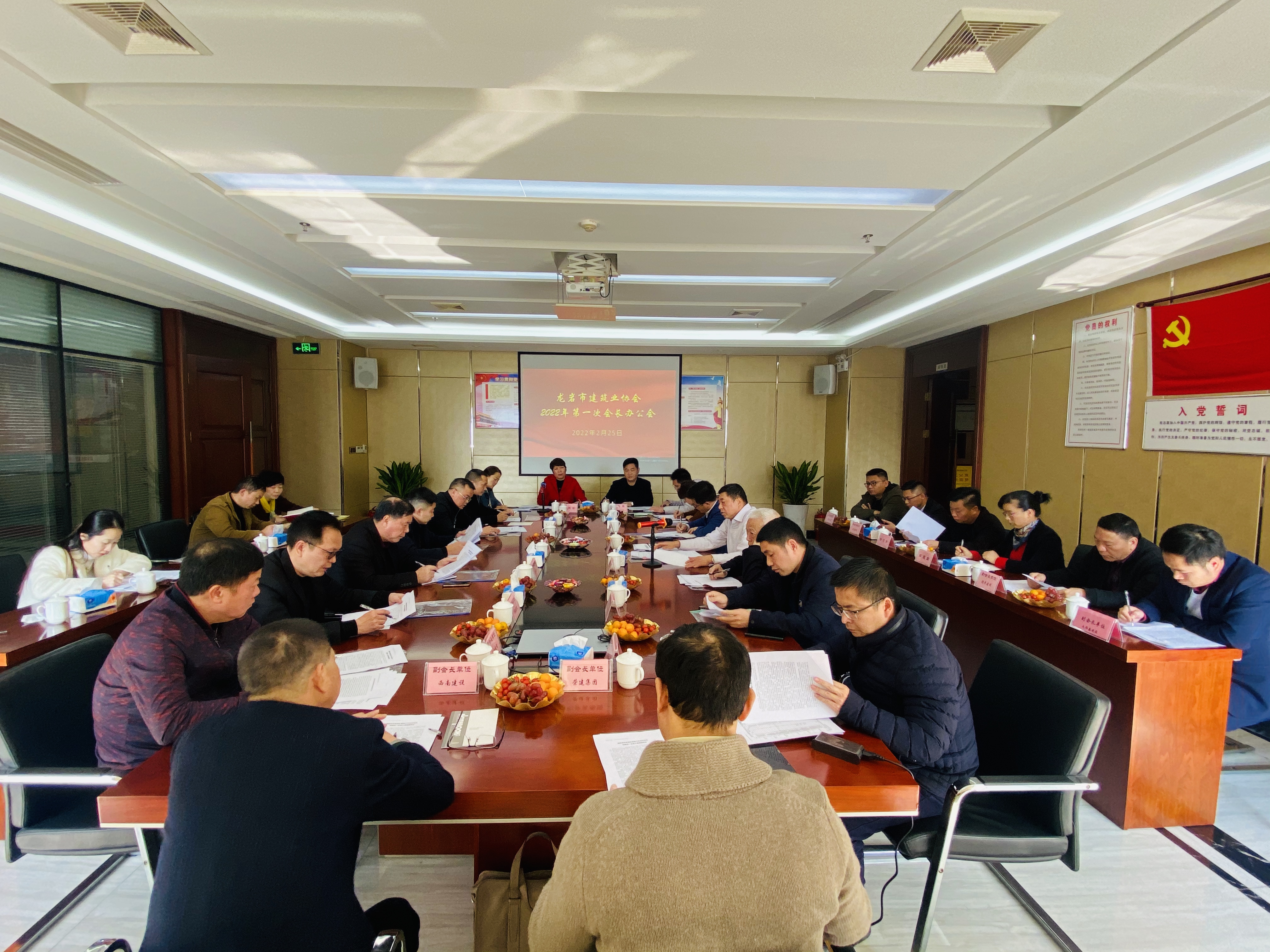 2022年2月25日下午,龍巖市建協(xié)2022年度第一次會(huì)長(zhǎng)辦公會(huì)議在福建省恒基建設(shè)股份有限公司會(huì)議室召開(kāi)。會(huì)議應(yīng)參會(huì)秘書(shū)長(zhǎng)、監(jiān)事長(zhǎng)及副會(huì)長(zhǎng)以上人員26人,實(shí)際到會(huì)24人(請(qǐng)假2人)。會(huì)議主要議題為:1、學(xué)習(xí)和宣貫國(guó)家、省、市近期印發(fā)的行業(yè)政策文件;2、2021年協(xié)會(huì)主要工作情況和財(cái)務(wù)收支情況匯報(bào);3、協(xié)會(huì)換屆準(zhǔn)備的進(jìn)展和計(jì)劃(第九屆理事會(huì)主要職務(wù)的任職人選推薦辦法、章程修訂的部分內(nèi)容說(shuō)明、換屆大會(huì)主要議程等);4、2022年協(xié)會(huì)工作主要內(nèi)容(含信息化平臺(tái)建設(shè)、行業(yè)糾紛調(diào)解機(jī)構(gòu)設(shè)立、相應(yīng)的人力資源培訓(xùn)機(jī)構(gòu)設(shè)立等)。