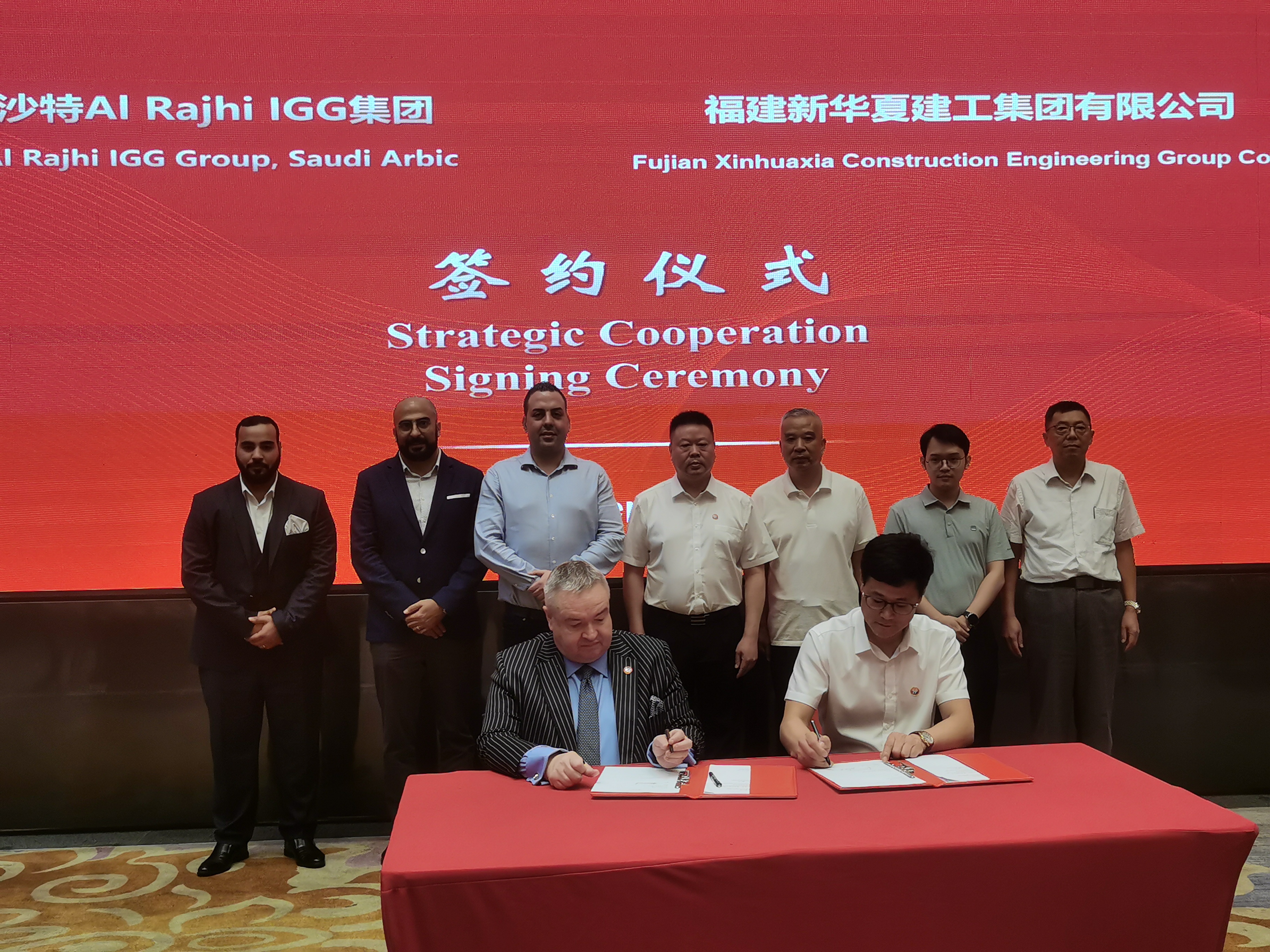 9月23日下午,沙特阿拉伯AI Rajhi IGG(沙特阿拉伯阿吉蘭集團(tuán))董事長DannyISAAC一行到訪福建新華夏集團(tuán),共同商洽交流,謀劃戰(zhàn)略合作,在龍巖萬達(dá)嘉華酒店舉行兩家集團(tuán)合作發(fā)展的框架協(xié)議簽約儀式。龍巖市住建局招商引資工作領(lǐng)導(dǎo)小組、龍巖市建筑業(yè)協(xié)會(huì)及福建新華夏集團(tuán)相關(guān)部門約60余人參加會(huì)議,共同見證雙方簽訂框架協(xié)議。