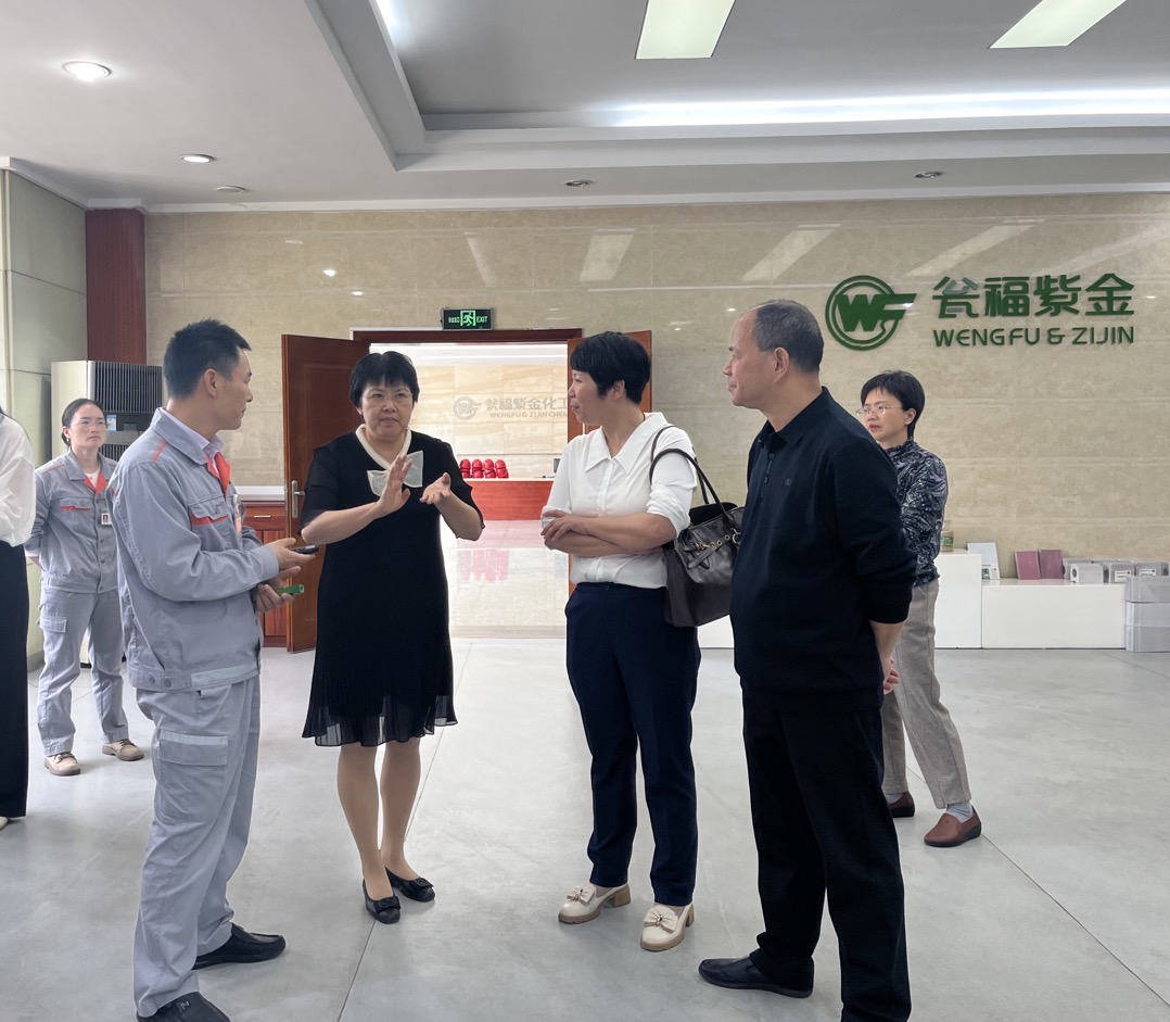 甕福紫金化工股份有限公司時,鄭玉琳主席實地察看杭思化工年產(chǎn)3萬噸硫酰氯項目,詳細(xì)了解企業(yè)生產(chǎn)經(jīng)營情況、安全生產(chǎn)情況及項目工程進(jìn)度,認(rèn)真聽取公司董事長趙勇